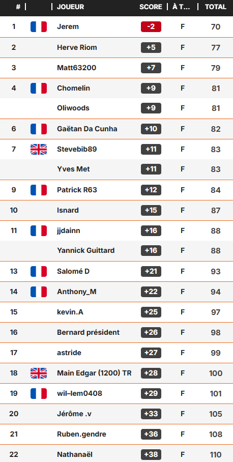 Ci après les résultats du tournoi TrackMan Range à Portrush ! Bravo à Jérémy pour son joli score ! Félicitation aux deux gagnants du tournoi ! Hervé et Salomé vos lots vous attendent à l’accueil